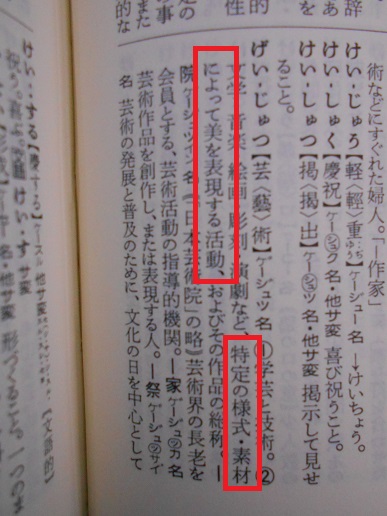 国語辞典では確かに「芸術とは美の表現」であると書かれている。